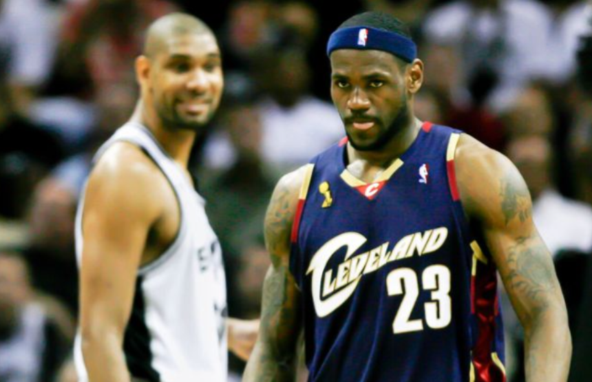 第一位有资格的,便是蒂姆・邓肯。邓肯和詹姆斯,堪称NBA历史上著名的宿敌,两人在总决赛的舞台上多次相遇,每一次对决都充满了看点。2007年的总决赛,当时的詹姆斯还是初出茅庐的 “小皇帝”,带领骑士队首次闯入总决赛,而邓肯则是身经百战的马刺队核心。最终,马刺队以4-0的悬殊比分击败骑士队,邓肯在赛后对詹姆斯说出了那句流传至今的名言:“未来属于你”。如今,詹姆斯早已接过了时代的大旗,成为了联盟的标志性人物,而这句 “未来属于你”,也成为了 NBA 历史上的经典瞬间之一。