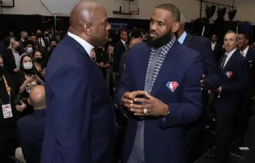 第三位有资格的,是魔术师约翰逊,詹姆斯能够加盟洛杉矶湖人,魔术师功不可没。当年,为了说服詹姆斯来到湖人,魔术师付出了大量的努力,他向詹姆斯描绘了湖人的未来蓝图,展现了球队重建的决心。可以说,如果没有魔术师的积极运作,湖人今天或许就不会有詹姆斯的身影。也正因如此,詹姆斯和魔术师之间的私交十分不错,尽管他们并非同一时期的球星,一个活跃于20世纪80年代,一个则在21世纪开启自己的传奇生涯,但他们彼此之间依旧惺惺相惜,对彼此的篮球智商和领导力都十分认可。